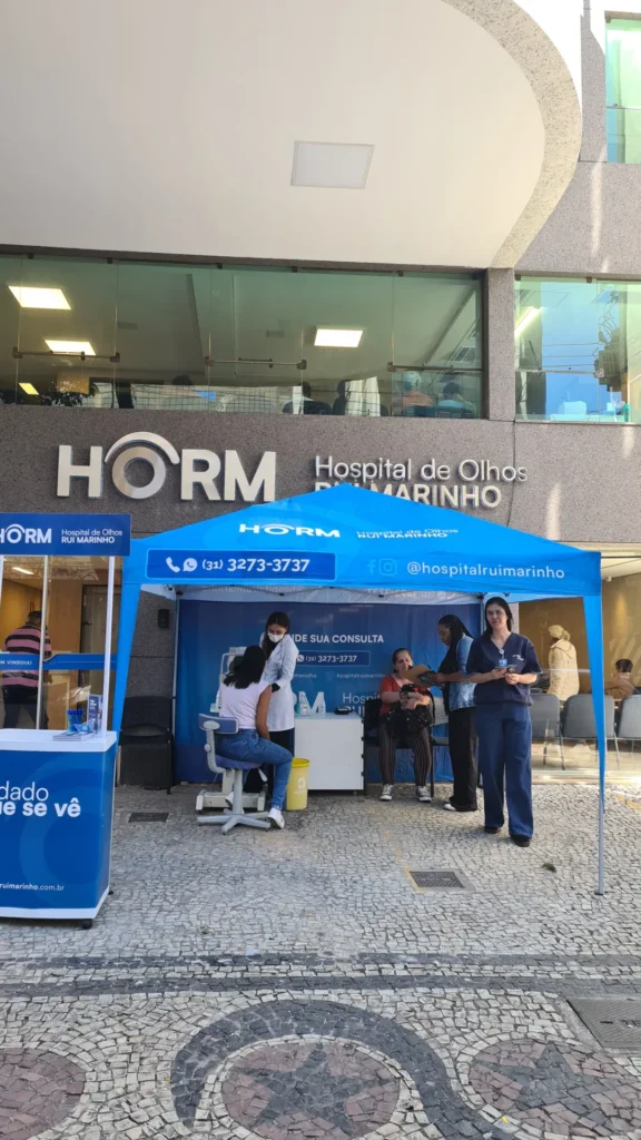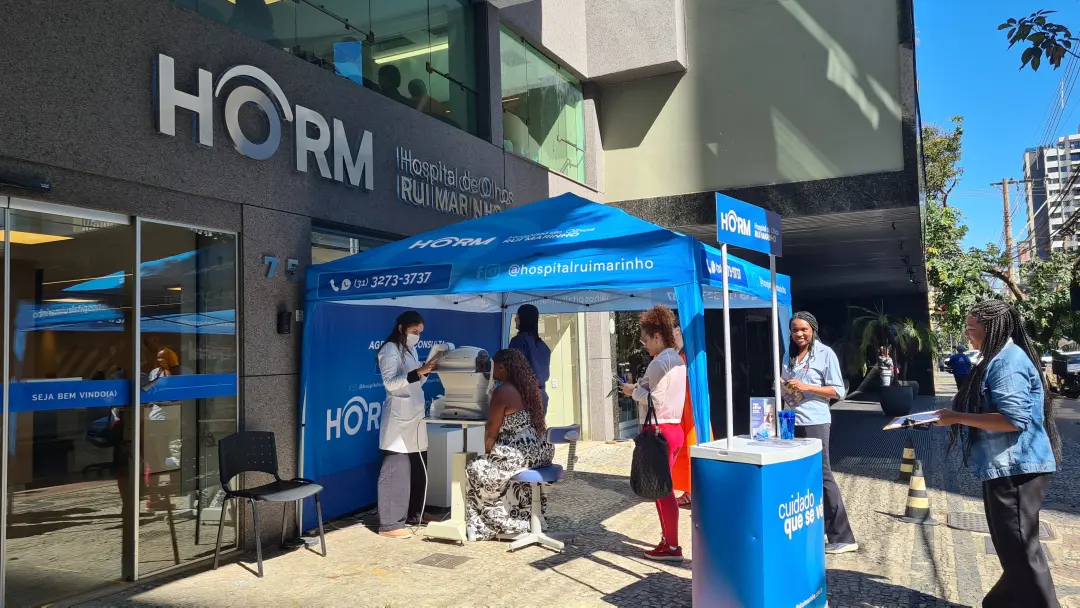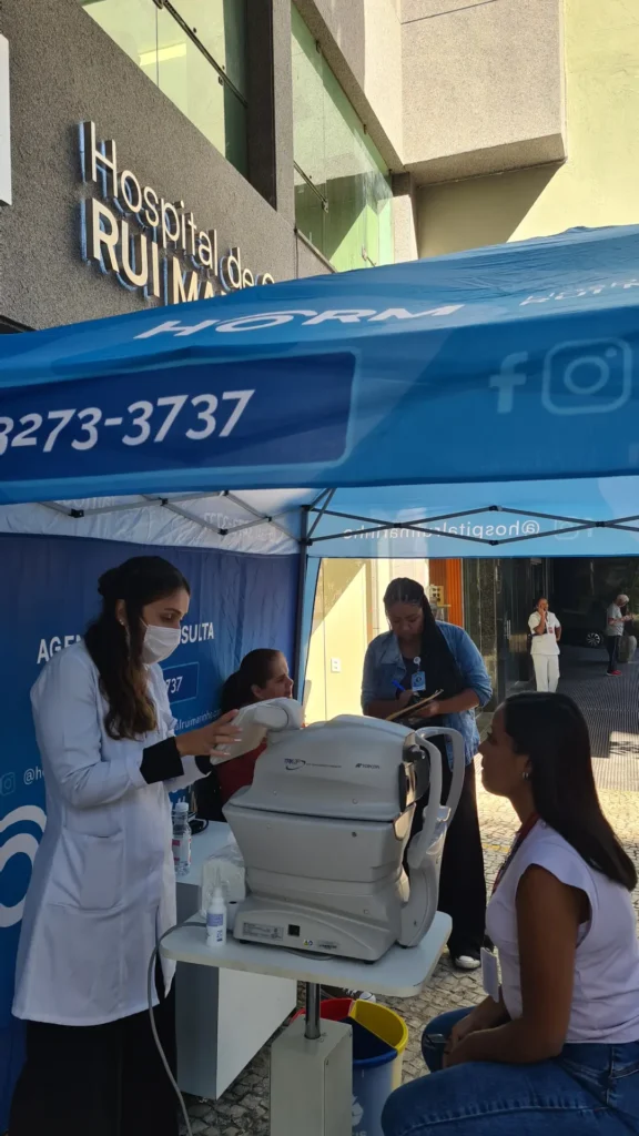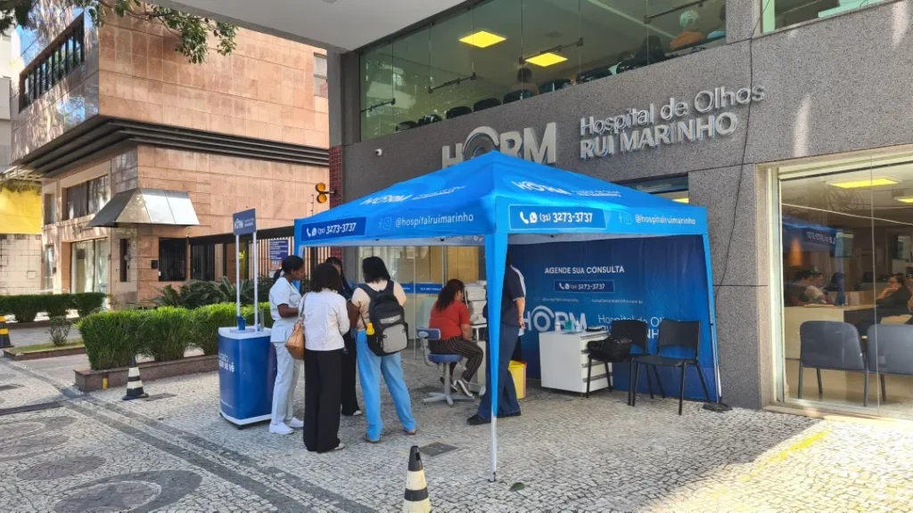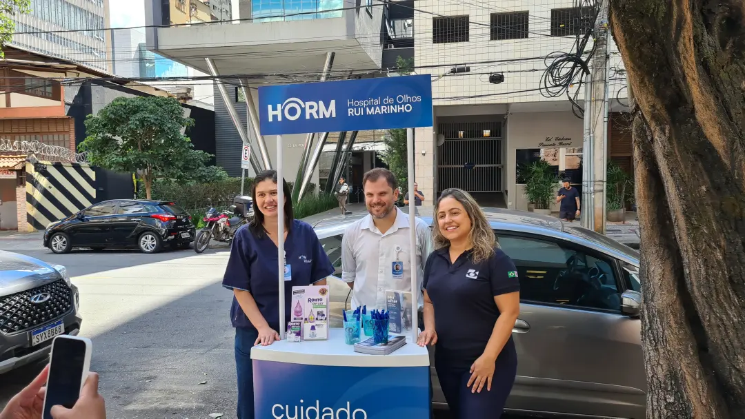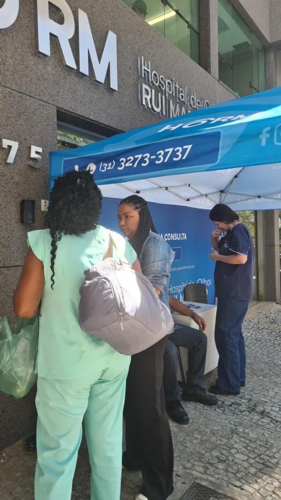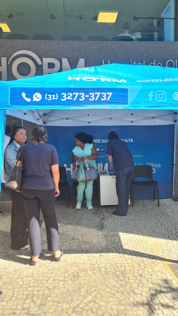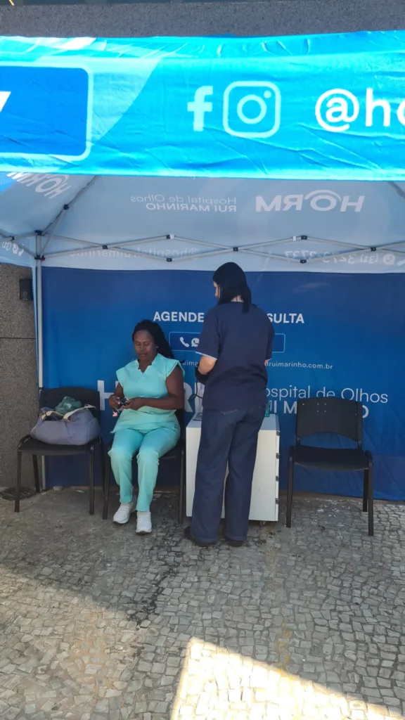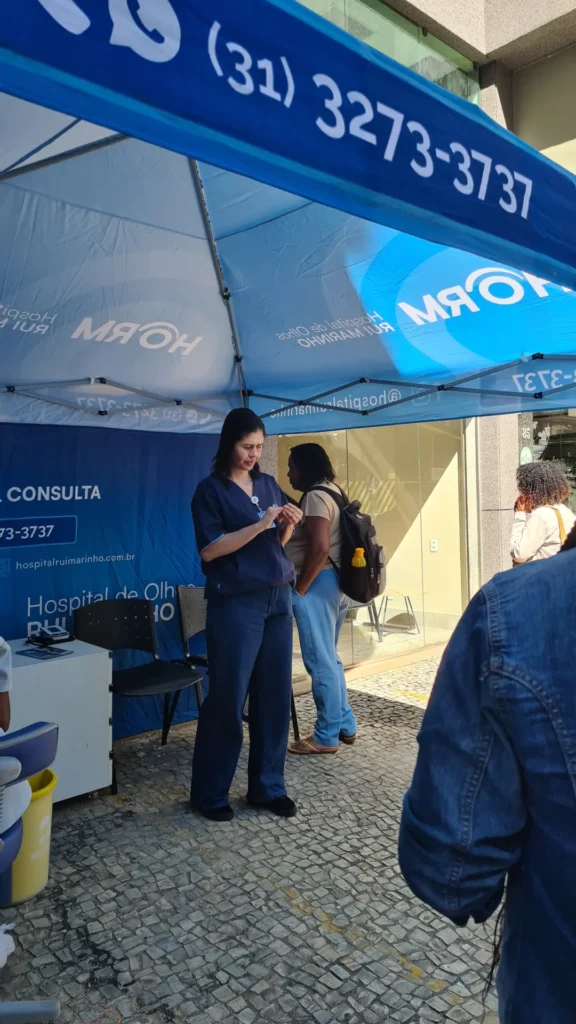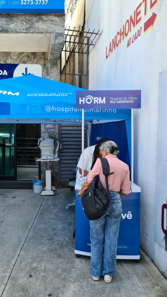 Nos dias 14 e 16 de abril de 2026, o Hospital de Olhos Rui Marinho (HORM) realizou uma ação externa em frente às unidades Venda Nova e Gonçalves Dias, levando orientação e triagem em saúde ocular diretamente para quem circulava pela região.