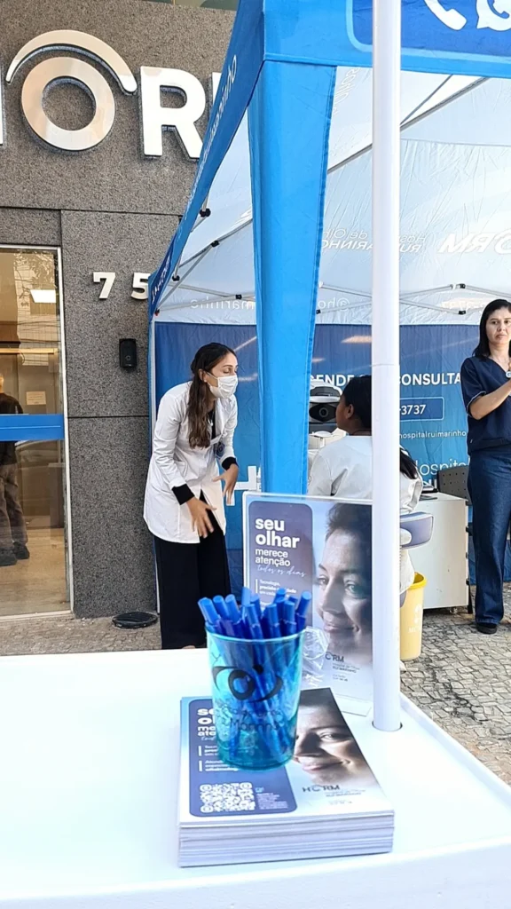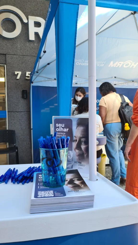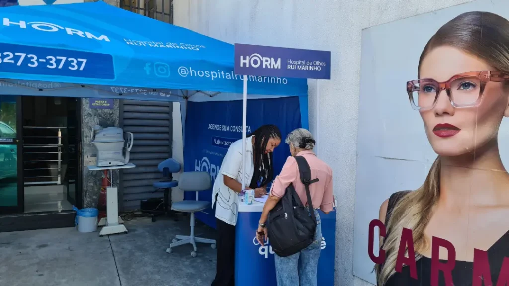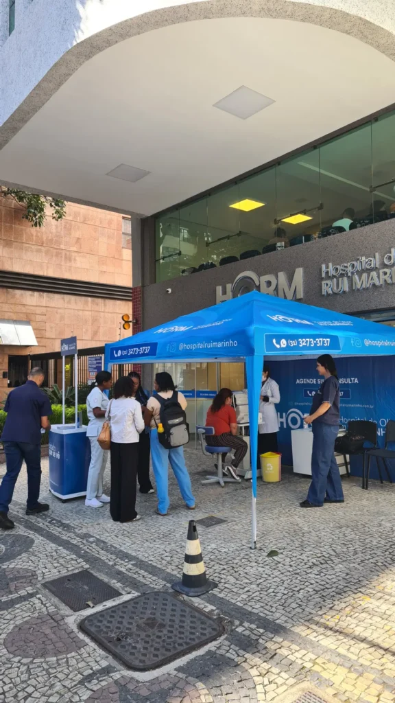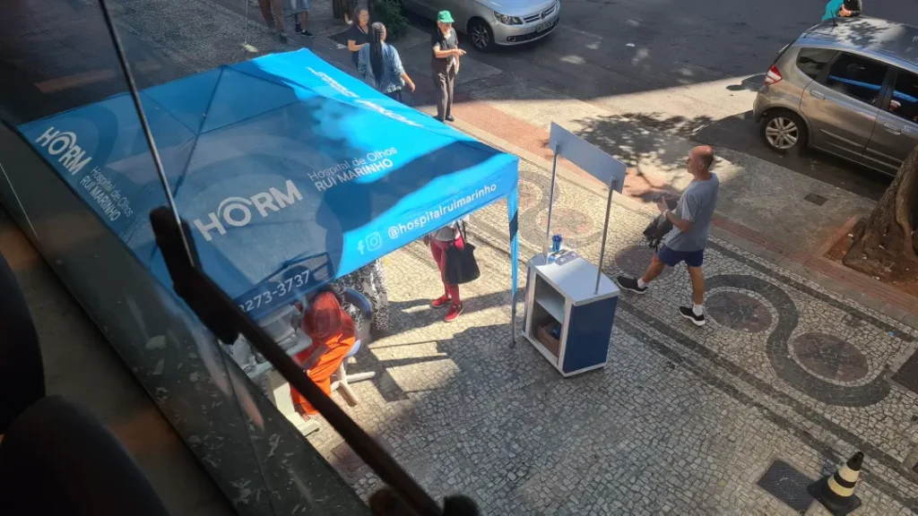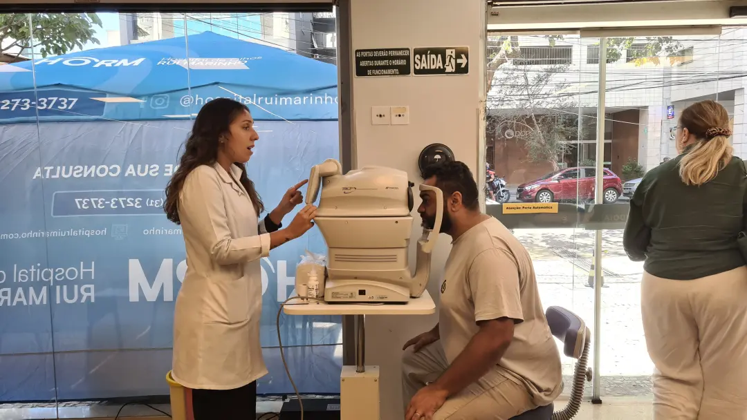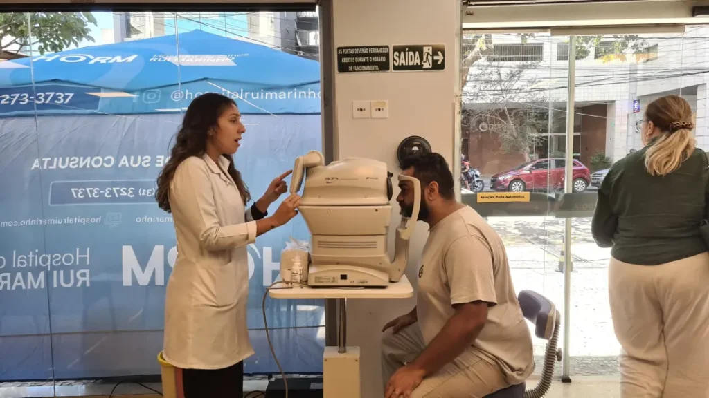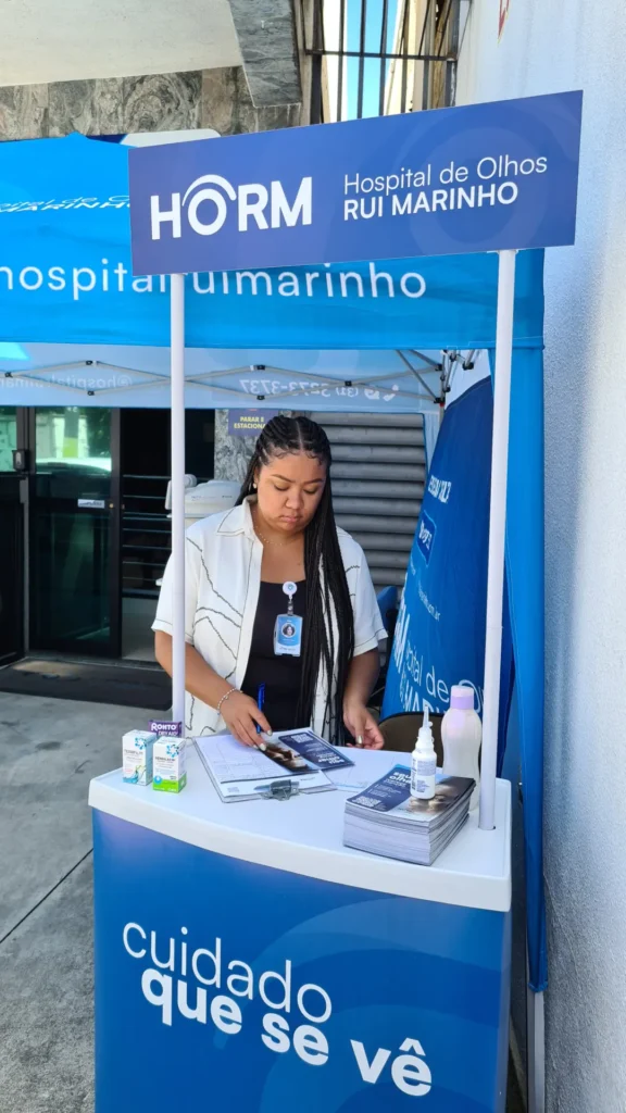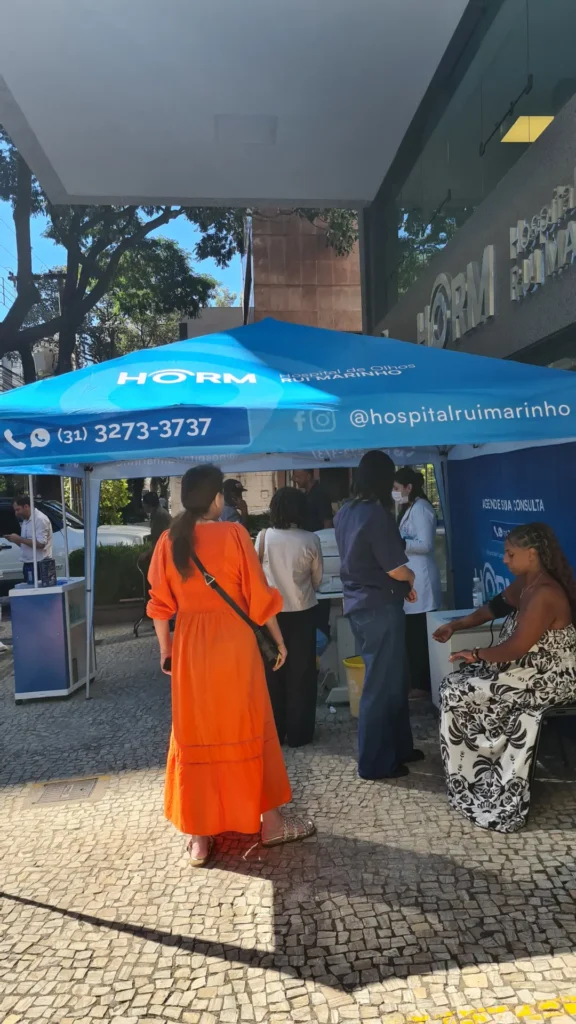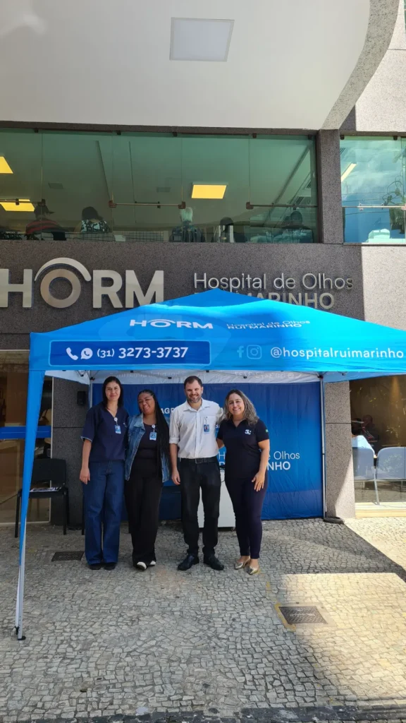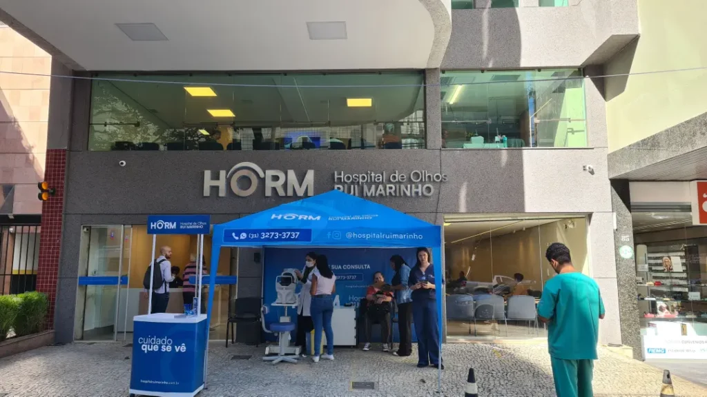 Nos dias 14 e 16 de abril de 2026, o Hospital de Olhos Rui Marinho (HORM) realizou uma ação externa em frente às unidades Venda Nova e Gonçalves Dias, levando orientação e triagem em saúde ocular diretamente para quem circulava pela região.