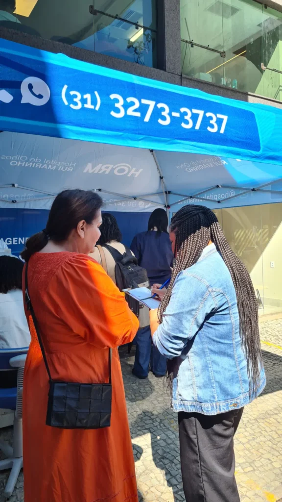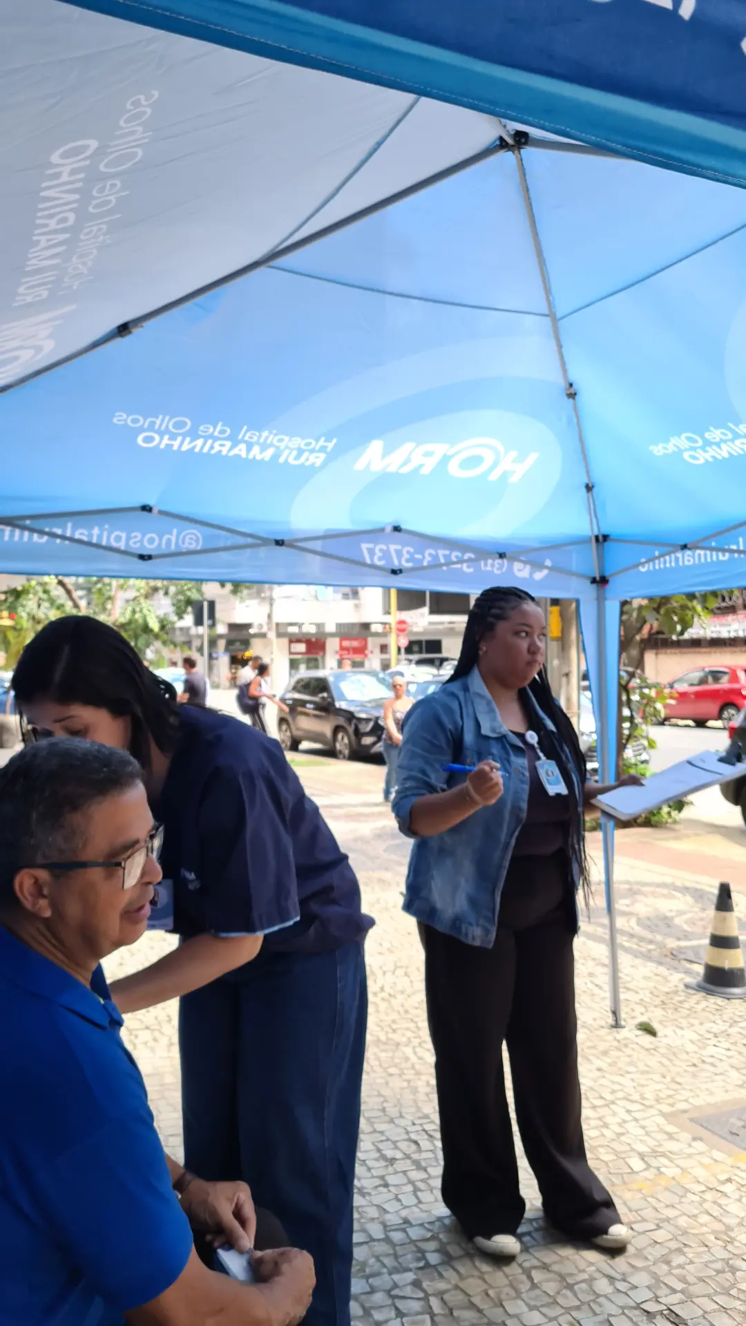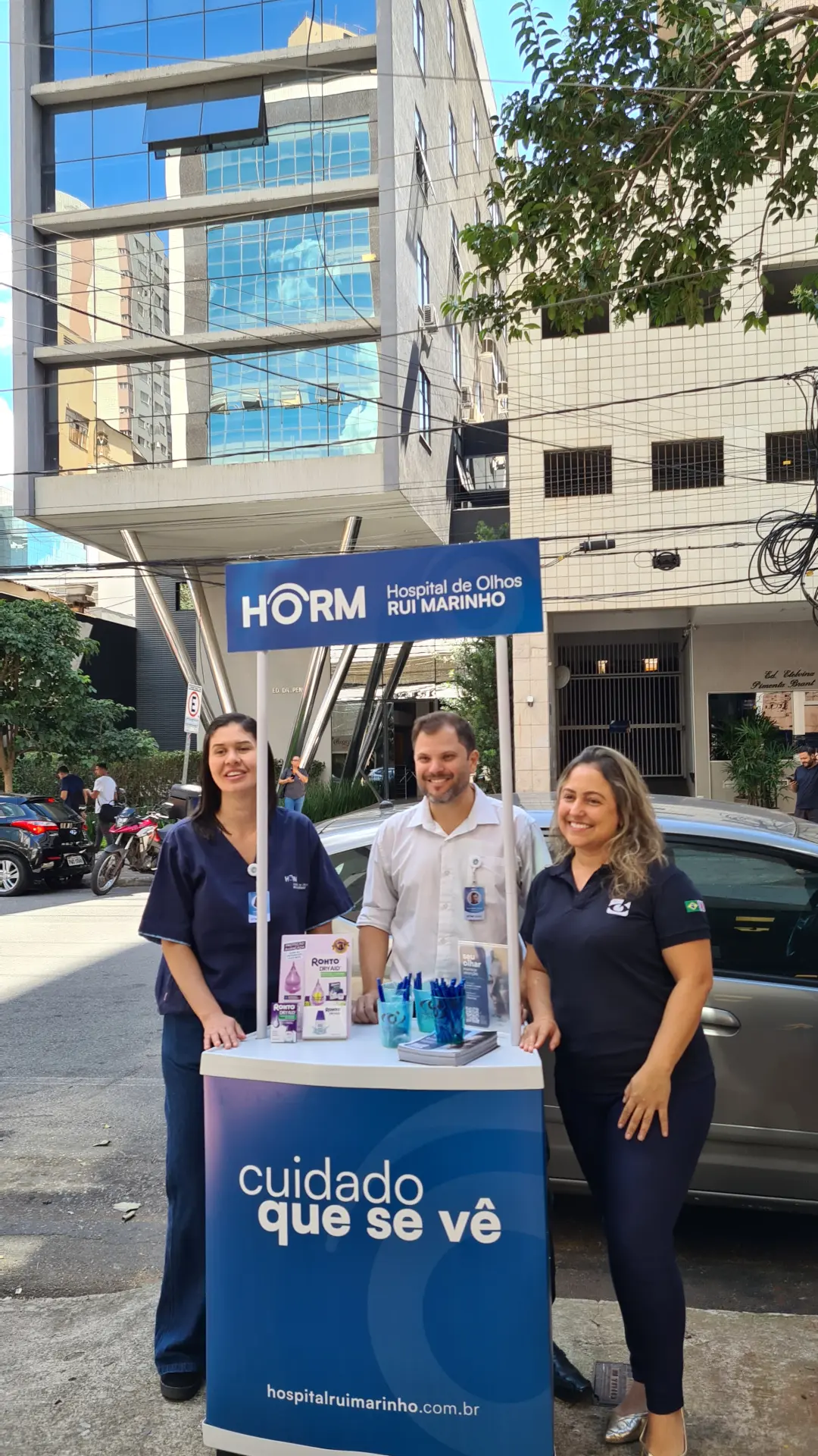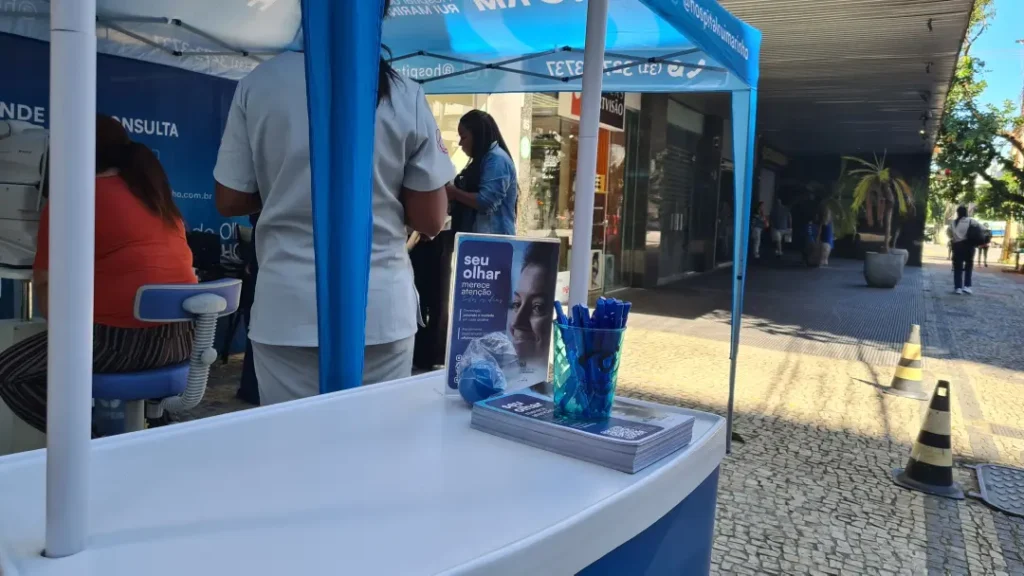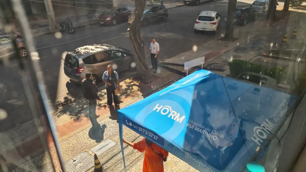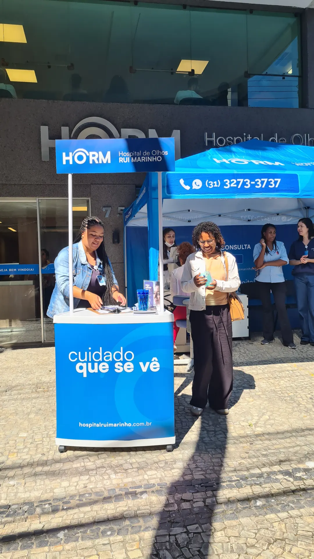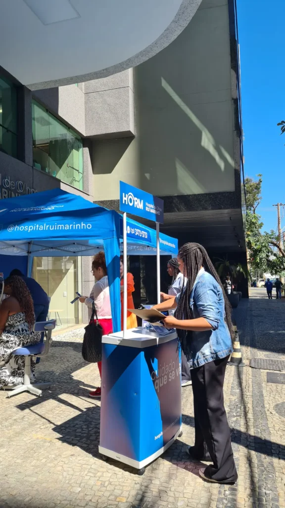 Nos dias 14 e 16 de abril de 2026, o Hospital de Olhos Rui Marinho (HORM) realizou uma ação externa em frente às unidades Venda Nova e Gonçalves Dias, levando orientação e triagem em saúde ocular diretamente para quem circulava pela região.