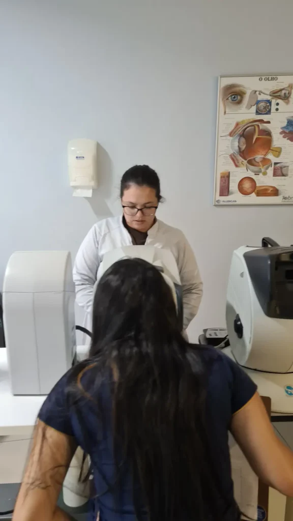 - Autorrefrração, que auxilia na identificação de possíveis necessidades relacionadas ao uso de óculos